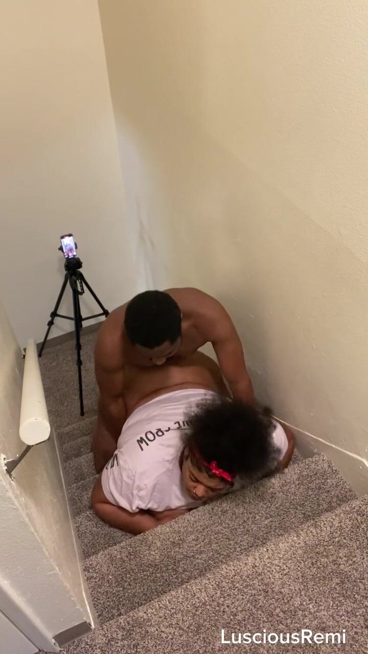 He nutted all over my fat pussy on the stairs - emporn.com